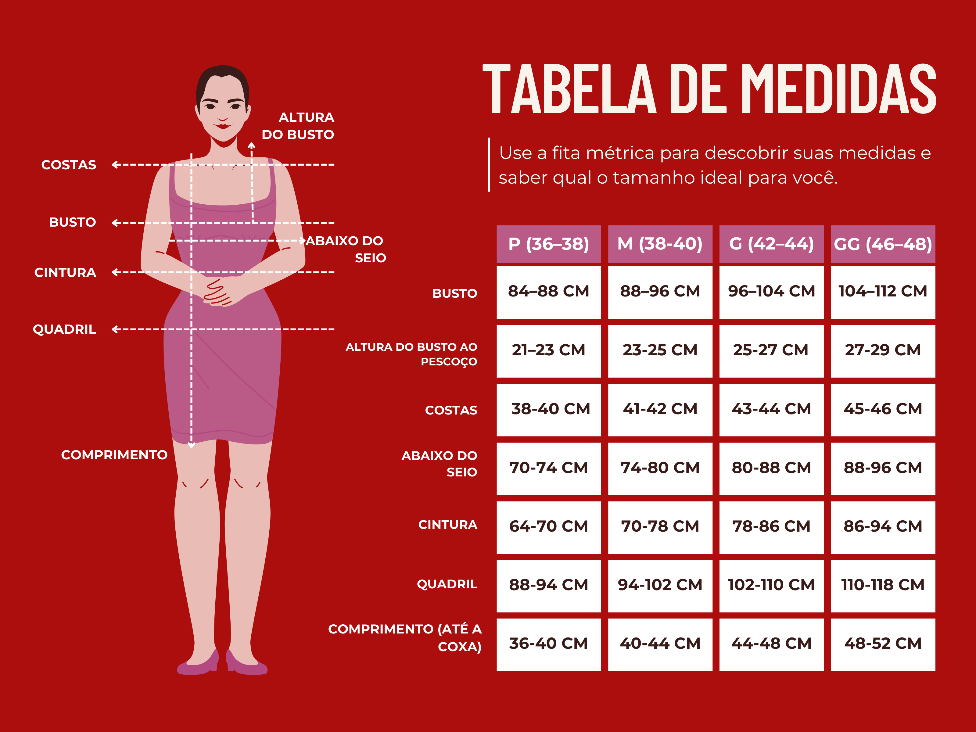 Para que cada criação abrace seu corpo com precisão e conforto, siga este guia simples de medição.